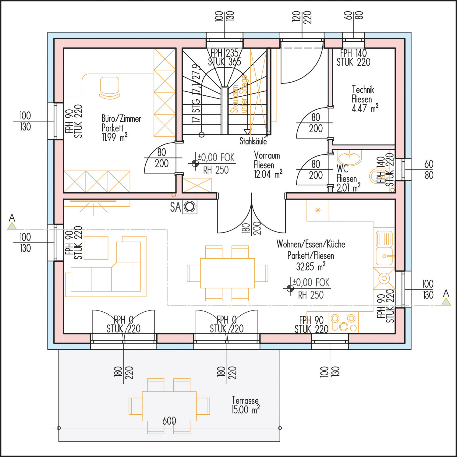 Raumhöhe EG 250 cm