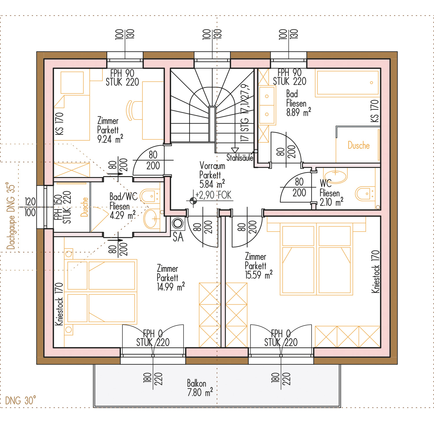 Raumhöhe OG 250 cm
