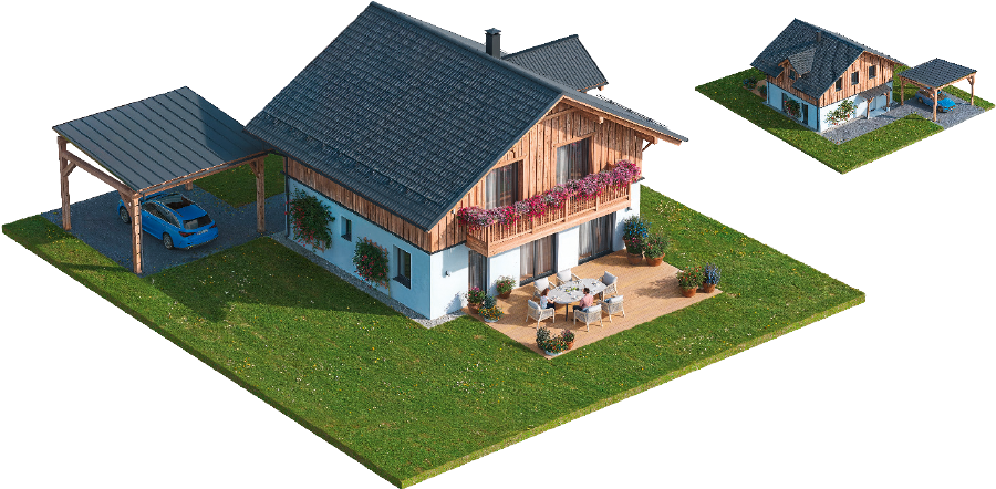 Das Ausseer.Land.Haus.© ist keine Luxusvilla, vielmehr ein gut eingeteiltes, architektonisch gelungenes Wohlfühlhaus mit garantierter Bauqualität von heimischen Betrieben unter Verwendung von verlässlichen Markenprodukten wie Viessmann, Laufen, Hansgrohe, Solido, Eternit®, Gira, Hörmann etc.
